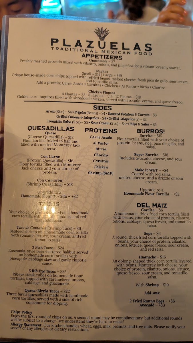 Plazuelas Mexican Restaurant Menu