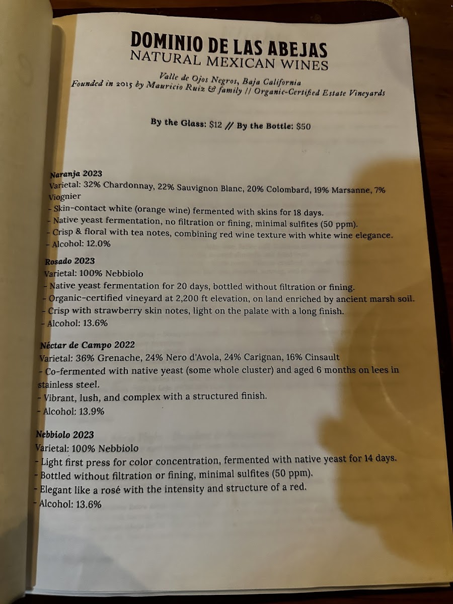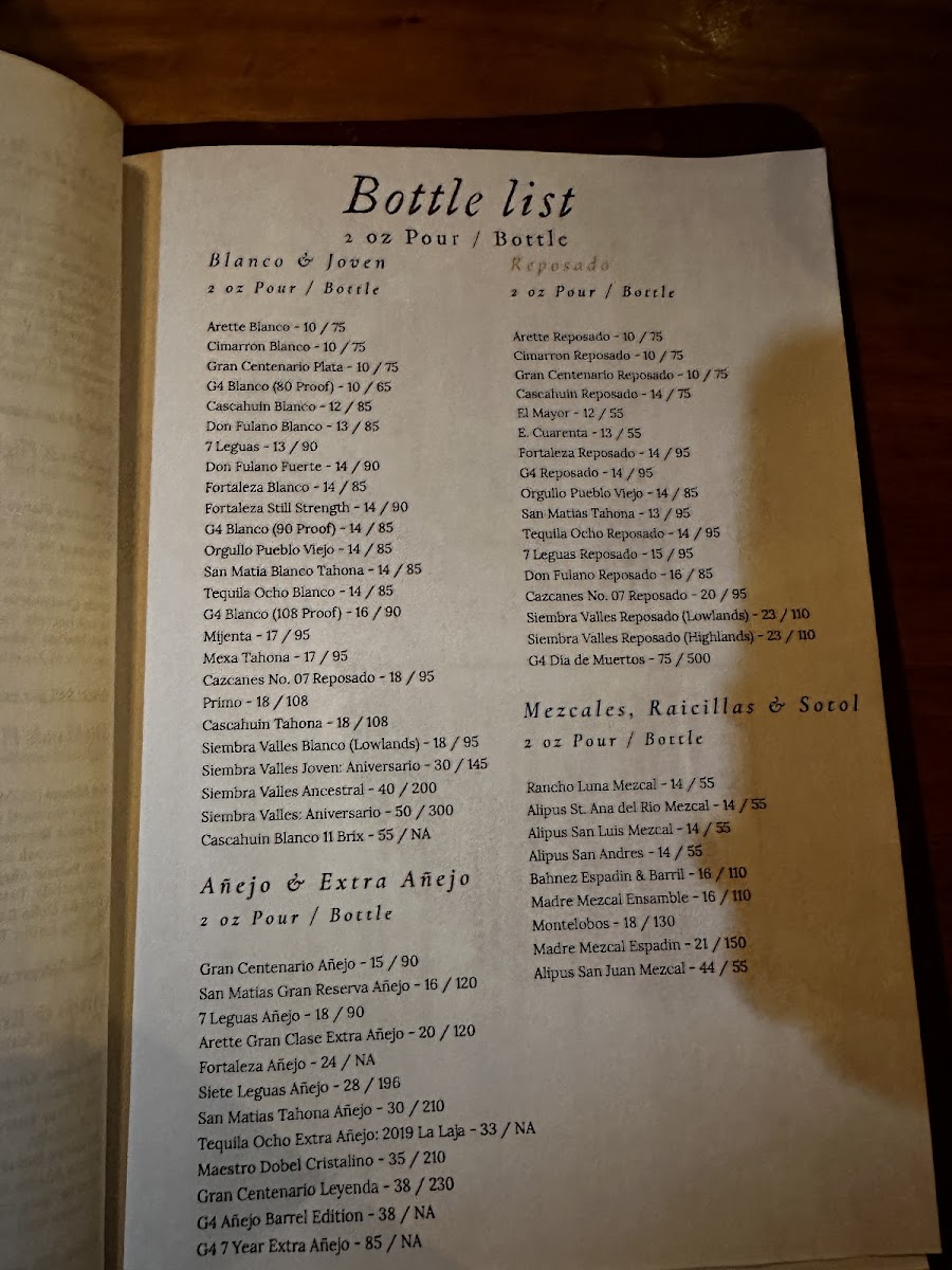 Drinks are available both as non-alcoholic and alcoholic options, including lemonade and a curated cocktail list featuring palomas made with tequila or mezcal, fresh citrus juices, agave nectar, and seltzer water.